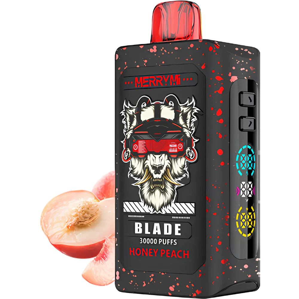 MerryMi Blade 30K it’s revolutionary disposable e-cigarette, which combines modern technologies, strong design and amazing performance. Thanks to the impressive amount of up to 30,000 puffs, Blade 30K sets a new standard in the world disposable. Huge capacity 26 ml of e-liquid and solid 850 mAh battery guarantee uninterrupted vaping for a long time — without compromise. buy Blade 30K Honey Peach