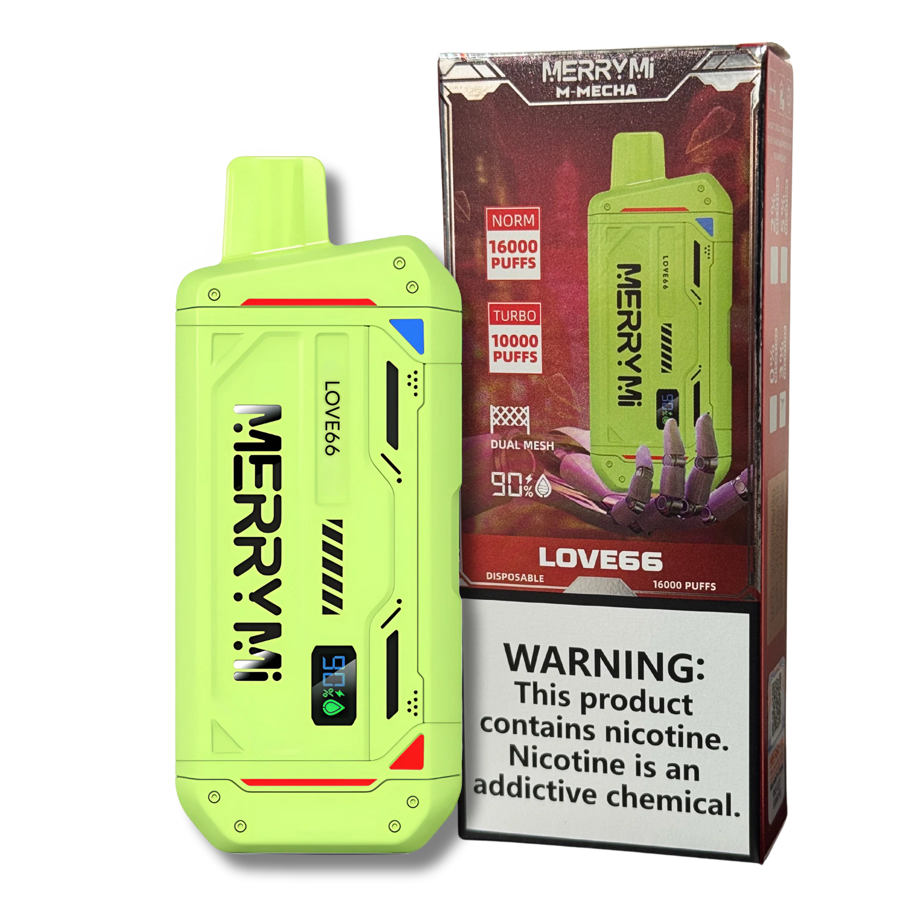 M-Mecha is an innovative disposable e-cigarette created with maximum comfort of use in mind. Thanks to the capacious battery 850 mAh and an impressive amount 20 ml e-liquid, the device offers up to 16.000 puffs, which makes it one of the most efficient models on the market. This is an ideal solution for people looking for a convenient and maintenance-free way to vape.