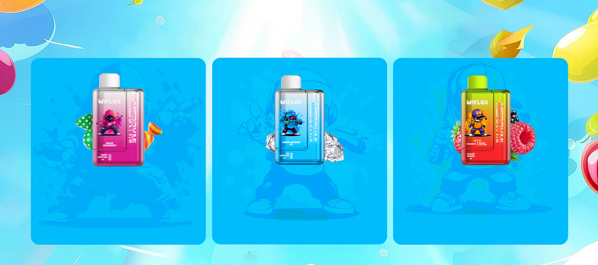 Tank 1: Control fruit flavor, ice, and sweetness for your chosen series.