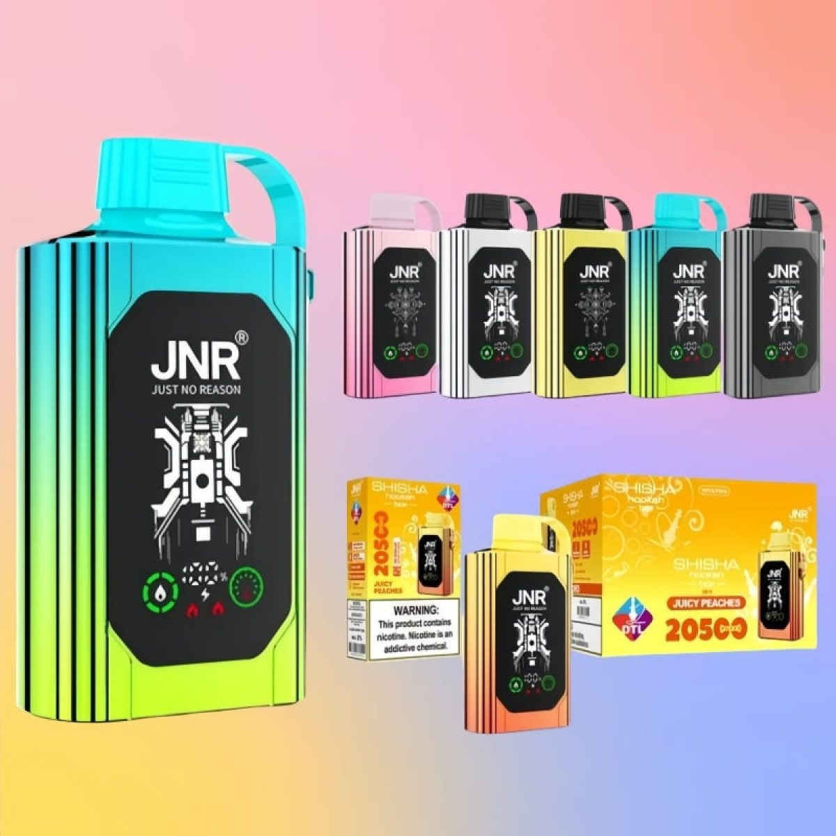 Njut av upp till 20 500 bloss av rik och len ånga med JNR Shisha Hookah Box 20500 Puffs Vape, med dubbel meshspole-teknologi, en 25 mL e-vätska kapacitet och ett uppladdningsbart 1000mAh batteri för längre sessioner.